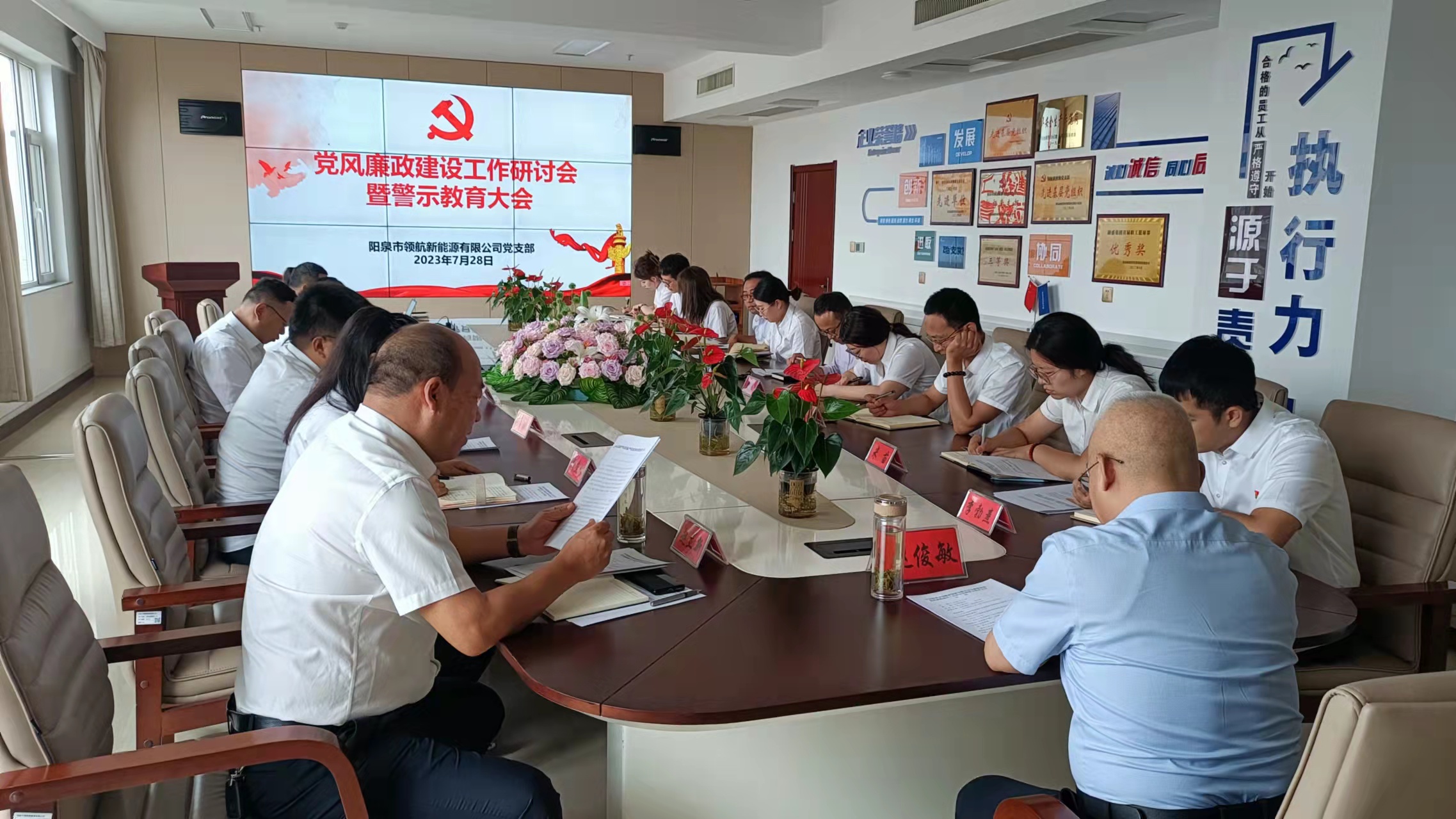 7月28日,根據(jù)融盛集團黨委前期安排,陽泉市領航新能源有限公司黨支部召開黨風廉政建設工作研討會暨警示教育大會。參加此次會議的包括公司班子成員、全體黨員(含預備黨員)和中層干部,做到了“關鍵少數(shù)”全覆蓋。融盛集團黨委專職副書記趙俊敏到會指導并作點評講話。